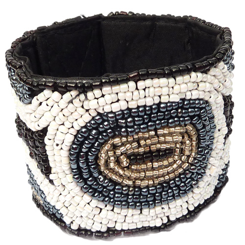 Anneau tout en perles de rocaille, tissé sur élastique.