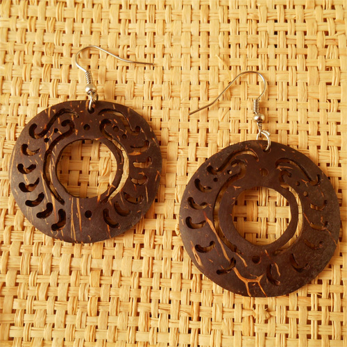 Boucles d'oreilles originales style ethnique, artisanales en Noix de Coco