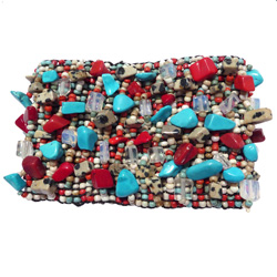 Boucles d'oreilles fantaisie pendantes, anneaux de style créoles, avec de grosses perles de rocailles irrégulières.