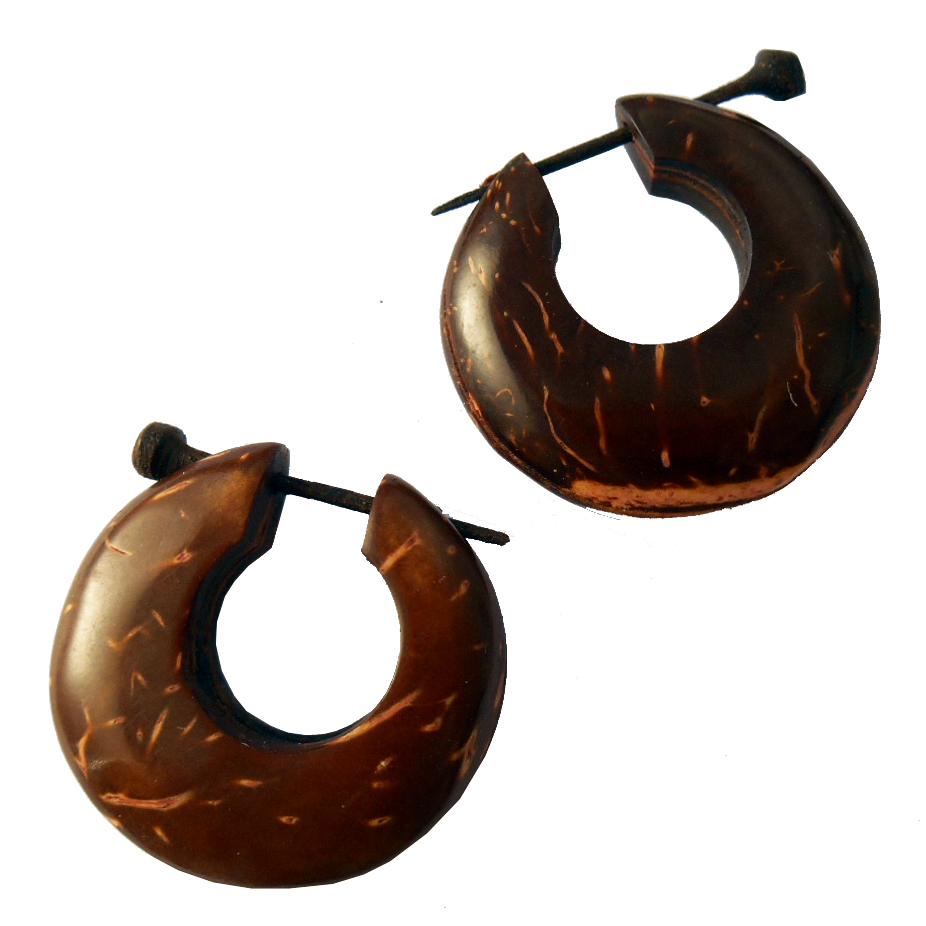 Boucles d'oreille originales en noix de coco naturelle, artisanat de Bali