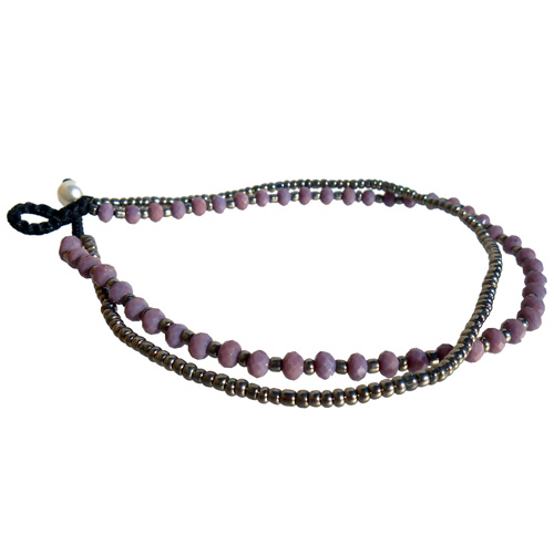Bracelet de cheville 2 rangs de perles rose pâle et cuivré Artisanat de Bali